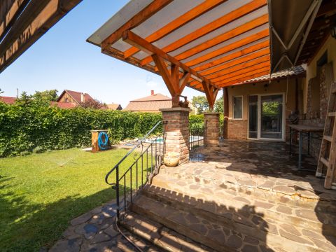A 420 m²-es telken álló, nettó 166 m²-es ház 2004-ben épült beton alapon, tégla falazattal, cserépfedéssel. 5 cm falszigetelés és 20 cm födémszigetelés gondoskodik az energiatakarékos működésről.