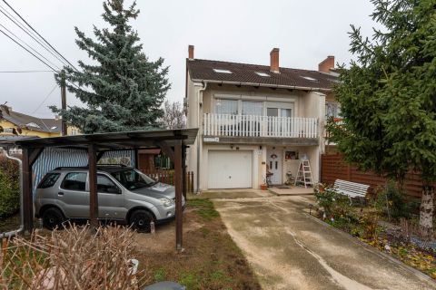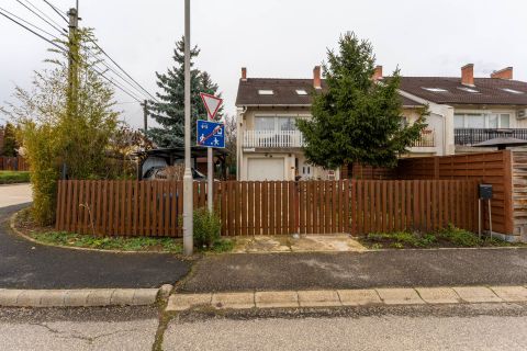 A garázs a lakótérből is közvetlenül megközelíthető. Az udvaron tetővel ellátott felszíni parkoló, sütögetésre alkalmas rész és tároló is található. A sorházzal szemben több közterületi parkolóhely áll rendelkezésre.