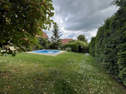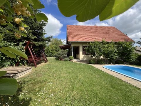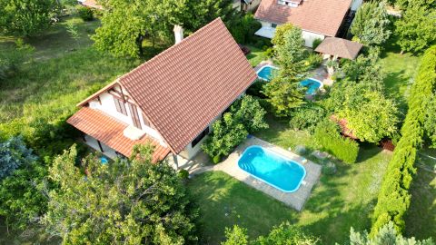 A Balatontól mindössze 1500 méterre, Balatonföldvár nyugodt, ritkán beépített részén kínálunk megvételre egy valóban különleges adottságú, gondosan karbantartott, medencés családi házat.
