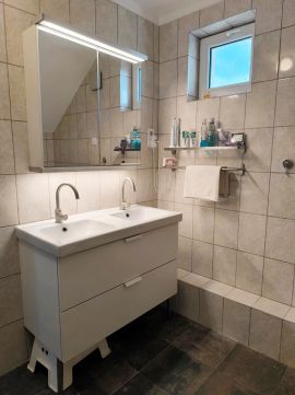 A 2005-ben épült, masszív Porotherm téglaház 2022 óta folyamatos korszerűsítésen esett át. A 255 cm-es belmagasság és a jó tájolás világos, barátságos belső tereket eredményez. A mindennapi komfortot tovább növeli, hogy minden hálószoba, valamint a nappali is klimatizált, így az év minden szakában kellemes hőmérséklet biztosított.