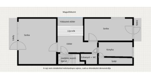 átlagos, felújítandó állapotú. Az alagsorban található egy garázs, mosókonyha és egy hobbiszoba. A magasföldszinten egy tágas nappali, egy