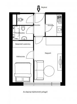 A lakás komfortérzetét növeli a tágas előszoba és a külön fürdőszoba és wc.