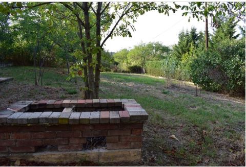 A telek 948 nm, gondozott, fűvel borított és néhány fa is található rajta, és csak minimálisan lejtős, pedig hegyen vagyunk. Az utca szintben fut, könnyen lehet így parkolni a telek előtt, vagy az udvarba beállva a kialakított fedett beállón. Aszfaltozott burkolatú úton lehet megközelíteni az ingatlant.