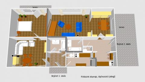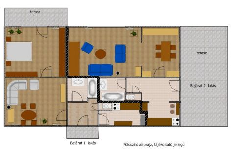 - 2 szoba, terasz, kertkapcsolat