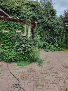 Az garázs egy autónak épült, de az udvaron lehetséges még egy beállás.