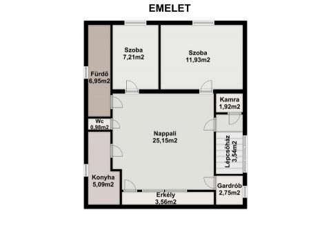 A lakótér alatti szinten 22 négyzetméter alagsori rész, pince helyezkedik el.