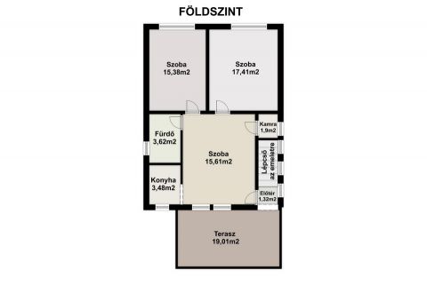 A házhoz 20 négyzetméter terasz kapcsolódik, amely a hátsó kertre néz, így kiváló helyet biztosíthat a pihenéshez, családi összejövetelek számára.