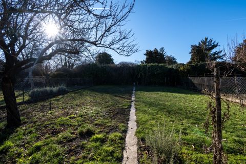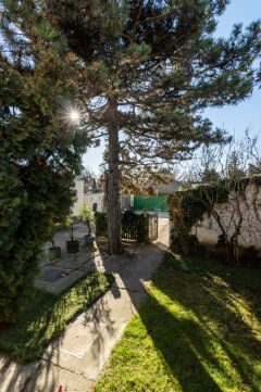 A telek hátsó részében kényelmes méretű zöldfelület biztosít helyet a szabadidős tevékenységeknek.