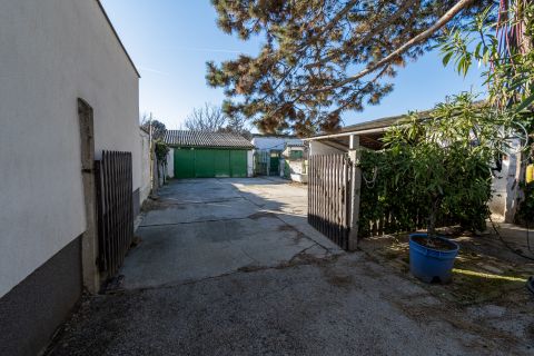 A telek középső részében autóbeállóhely és tárolóhelyiségek találhatóak.
