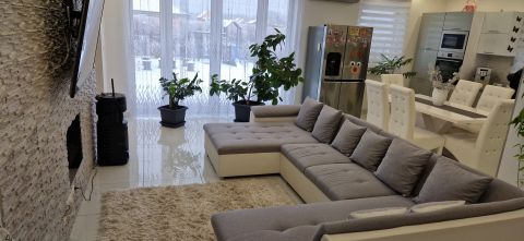 * Nagy méretű, modern, gépesített konyhabútor, újszerű gépekkel