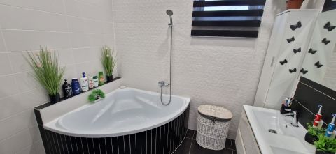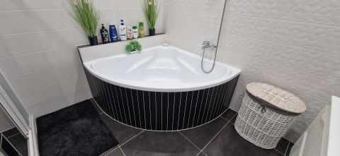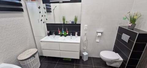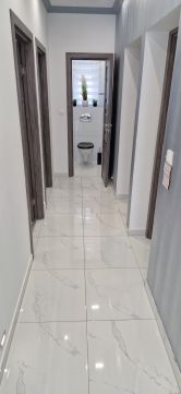 * Nagy méretű fürdőszoba, igényes burkolatokkal, WC-vel, zuhanyzóval