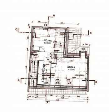Földszinten, konyha, étkező, nappali, kamra, fürdőszoba, hálószoba, terasz
