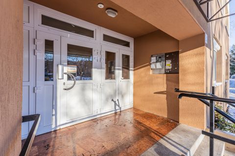 A lakás előtt leválasztára került egy folyosószakasz, amely praktikus előszobaként funkcionál.