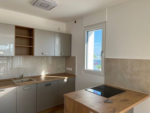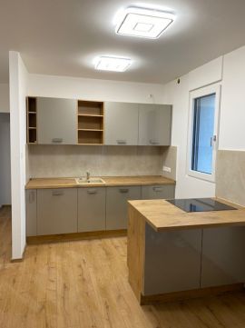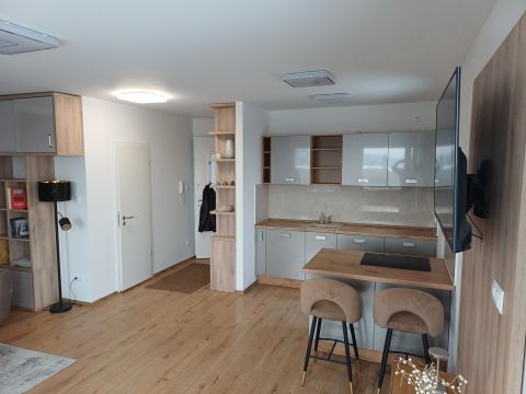 A lakás fűtése korszerű elektromos padlófűtéssel megoldott, amely tovább erősíti a letisztult, komfortos életteret. A konyha magasfényű, osztrák gyártású bútorzattal készült, beépített AEG és Bosch gépekkel; a konyhasziget a mindennapok természetes középpontja, ahol a design és a funkcionalitás magától értetődően találkozik.