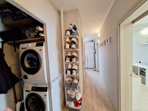 •A mosógép kiállása a bejárat melletti tárolóba került, így a fürdőszoba tágas maradt