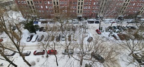 Nagy parkoló a ház előtt, díjtalan övezet.