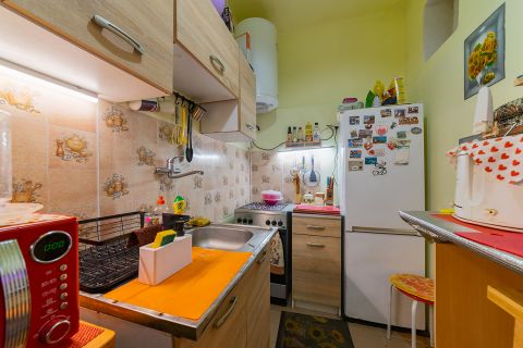 A hangulatos teraszról jutunk az ingatlanba. Belépve előtér fogad, ahonnan a nappali nyílik. Innen külön megközelíthető a hálószoba, a konyha és a fürdőszoba. A két bejárat lehetővé teszi a rugalmas használatot .