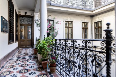 Az épület felújított, liftes, udvarán restaurált, korabeli kútszoborral.