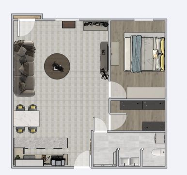 A 64 nm-es lakás nagy méretű amerikai konyhás nappalival rendelkezik, kényelmes hálószobával, gardróbbal és szintén nagy méretű fürdőszobával.