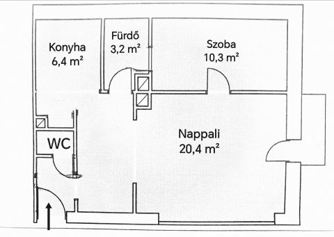Beosztása: előszoba, konyha, WC, fürdőszoba, nappali és hálószoba.