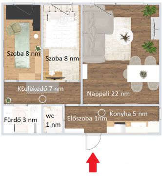 - 3 különnyíló szoba