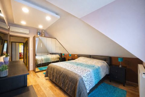 A 1900 m²-es telken, 2016-ban épült, mindössze 6 lakásos társasház felső szintjén csak ez az egy lakás található, ami garantálja a maximális nyugalmat és intimitást.