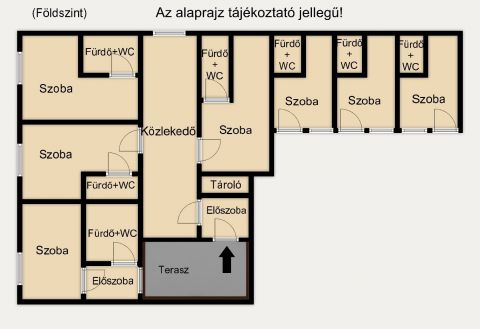 A 10 külön fürdőszobás szoba rendkívül ritka adottság, ami kifejezetten vonzóvá teszi befektetők számára. A csendes, jól megközelíthető elhelyezkedés stabil bérlői keresletet biztosít.