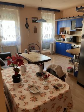 Anspruchsvoll renovierte 59 m² große 2-Zimmer-Wohnung mit amerikanischer Küche im 2. Stock eines 4-stöckigen Gebäudes in Komló-Körtvélyes zu verkaufen. Die Wohnung hatte ursprünglich 2,5 Zimmer, wobei aus dem halben Zimmer ein geräumiger Küchen-Essbereich wurde. Die Küchenmöbel sind maßgefertigt und gehören zusammen mit den darin enthaltenen Küchengeräten zum Verkaufspreis. Das Badezimmer mit Dusche und die Toilette befinden sich in separaten Räumen. Die Kunststofffenster und -türen sowie das mit Messgeräten ausgestattete Heizungssystem sorgen für einen sparsamen Betrieb. Zu dem Wohnung gehört auch ein Abstellraum. Es gibt kostenlose Parkmöglichkeit.
