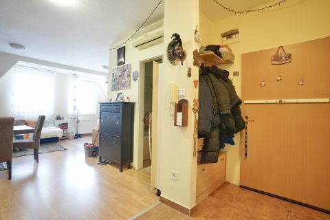 A lakáshoz zárható közös tároló is tartozik, a lépcsőház földszintjén