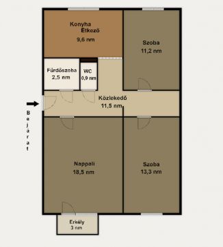 -nappali + 2 különnyíló szoba