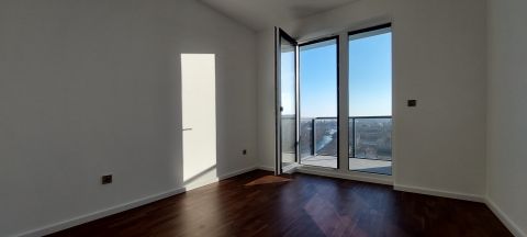 Eladó a Waterfront City igényes, zöld környezetében egy 13. emeleti, nettó 54 m2-es, nappali + 2 szobás lakás – Dunára és budai hegyekre nyíló örök panorámával – több terasszal, amelyek minden helyiségből közvetlenül elérhetők