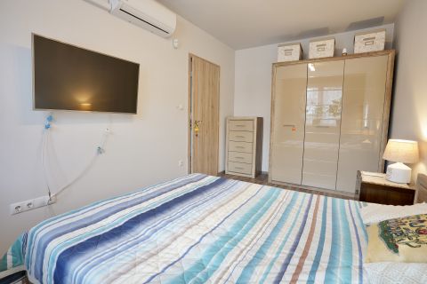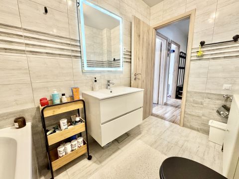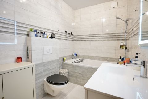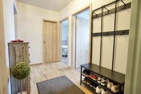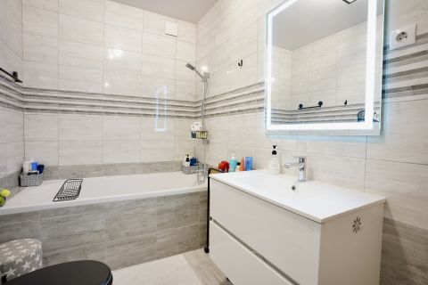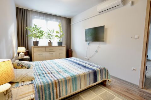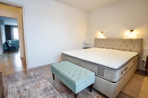 A lakás elosztása kifejezetten praktikus: tágas, világos amerikai konyhás nappali, 3 külön nyíló hálószoba, valamint 2 fürdőszoba WC-vel (egy kádas és egy zuhanyzós).