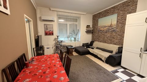Eladó a 14. kerületben, a Róna utcában 59 m2-es, nappali + 2 hálószobás, kertkapcsolatos, jó állapotú, magasföldszinti tégla lakás, rendezett társasházban!