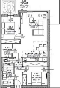 A lakás elosztása és jellemzői: