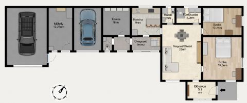 Elrendezés: nappali + 2 szoba