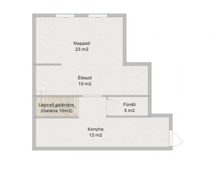 Az alapterülete 44m2, ezen felül még található egy 10 m2-es beépített galéria, mely egy plusz szobát jelent az élettérben.