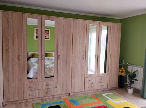 Fót csendes, mégis jól megközelíthető részén kínáljuk megvételre ezt a kivételes családi házat, amely ideális választás lehet családosok illetve több generáció számára is. Az ingatlan egy 662 nm-es telken helyezkedik el, a hátsó részen egy önálló alápincézett garzon lakóházzal. A sok szoba, valamint a szintenkénti, összesen 3 fürdőszoba bőséges teret biztosít a család minden tagjának. A ház jó állapotban van, és modern kondenzációs gázkazánfűtéssel, valamint klímával felszerelt, így az év minden hónapjában kellemes hőmérsékletet biztosít. A tágas nappali a családi együttlétek központja lehet. A beépített bútorok és szekrények praktikus használatot biztosítanak minden szinten. Az elegáns megjelenés mellett a világos, napfényes környezet garantálja a nyugodt pillanatok élvezetét. A szauna pedig a fárasztó napok utáni ellazulás tökéletes helyszínévé válik, így mindenki megtalálhatja a számításait ebben a csodás otthonban.A földszinten terasszal csatlakozik a hátsó kerthez, míg az emeleti szobákhoz erkélyekre lehet kimenni, amelyek tökéletes teret biztosítanak a szabadban való pihenéshez. A rendezett kert automata öntözőrendszerrel van ellátva, megkönnyítve a kertgondozást. A környék biztonságos és csendes, ideális a gyermekek számára. A közlekedési lehetőségek is kiválóak: a tömegközlekedés könnyedén elérhető, így a főváros közelsége és a gyors eljutás lehetősége miatt a mindennapi ingázás sem jelent problémát. Az autós közlekedés szempontjából is előnyös, hiszen a környező főbb közlekedési útvonalak gyorsan elérhetőek. Ez a tehermentes ingatlan prémium kivitelezésének és egyedi tervezésének köszönhetően nem csupán otthon, hanem egy tökéletes befektetési lehetőség is.