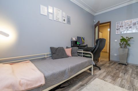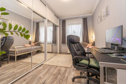 A kétszintes lakás lenti részén egy modern amerikai konyhás nappali és étkező található egy hálószobával és egy fürdőszobával. A fenti részén a lakásnak, két tágas hálószoba párosul egy fürdőszobával.