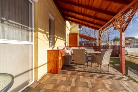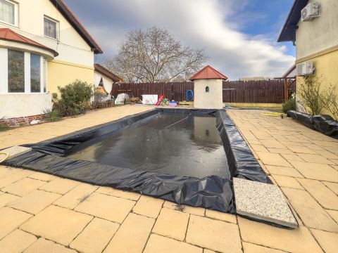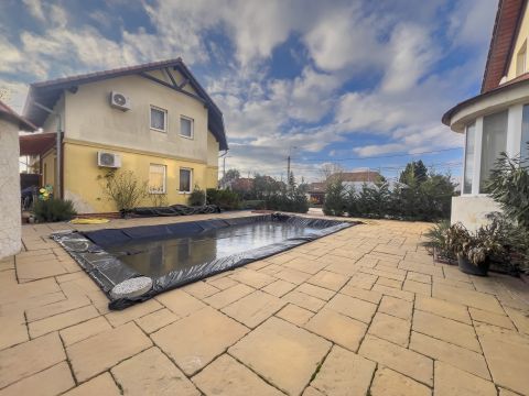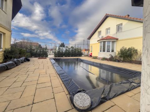 A társasház közös részén hatalmas parkosított kert, 2 db kerti tavacska aranyhalakkal és koi pontyokkal, bicikli tároló, szerszámos tároló házikó, illetve egy 8x4x1,5m medence helyezkedik el.