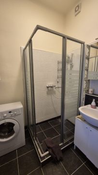 Megfelelően gépesített konyha, étkezőrésszel. Sok tárolási lehetőség található a lakásban. Külön fürdőszoba és mellékhelyiség.