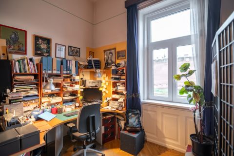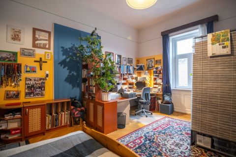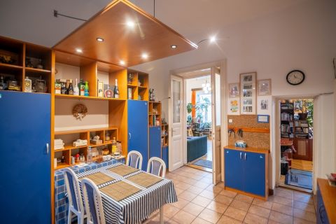 A VI. kerület Oktogon közvetlen szomszédságában, csendes egyirányú mellékutcában eladó ez a nagypolgári stílusjegyekkel bíró családi otthon, egy autó számára fix parkolási lehetőséggel!