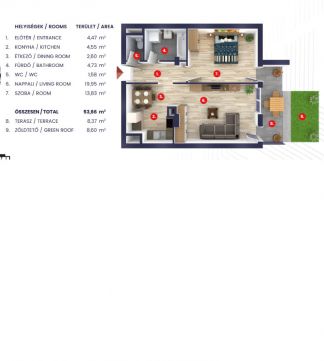 · 18 m² saját tetőkert és terasz