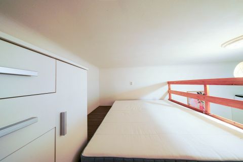 A lakás 16 m² alapterületű, amelyet egy 6 m²-es galéria egészít ki. Teljesen felszerelt, gépesített és bútorozott, az új tulajdonosnak azonnal költözhető vagy kiadható állapotban.