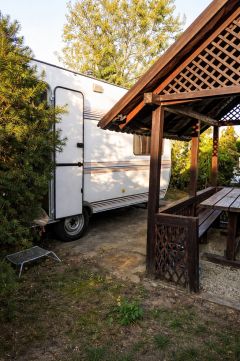 - nyárikonyhaként funkcionáló, berendezett lakókocsi, amely a vételár része