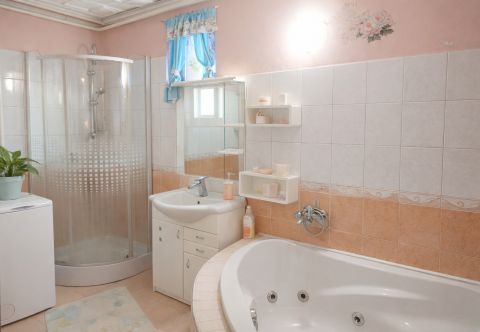 - modern fürdőszoba hidromasszázs sarokkáddal és zuhanyzóval