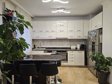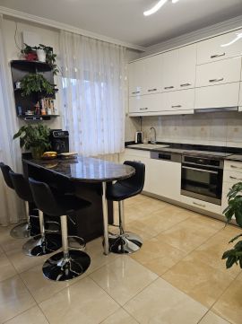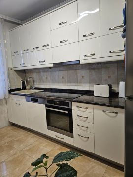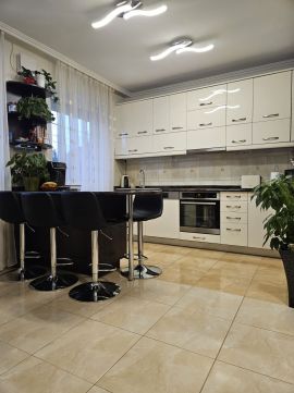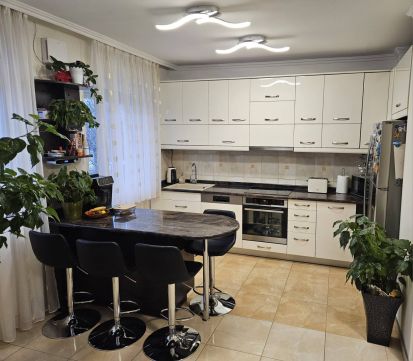 A konyha minőségi beépített bútorokkal és gépekkel, gránit munkapulttal készült, az étkezőnél bőven van hely a közös étkezésekhez.