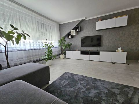 Debrecen Szabadságtelepének csendes, kertvárosi részén, a Vámospércsi útból nyíló, aszfaltozott utcában eladó egy háromszintes ikerház,