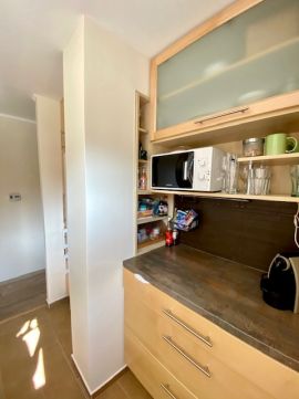 - Számos beépített szekrény segít a tárolásban, de a lakáshoz saját tároló is tartozik.