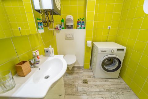 A lakás jelenleg két, önállóan is használható lakrészből áll, ugyanakkor eredetileg egyben, 72 m²-es otthonként működött.