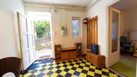Az ingatlan földszinti elhelyezkedésű, közvetlenül a ház előkertjéből megközelíthető, lépcsőház nélküli érkezéssel.